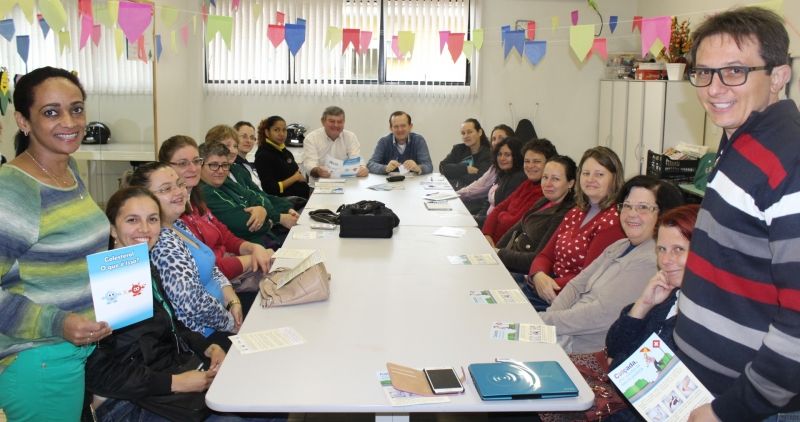 Calçadas de passeio e Colesterol serão os assuntos abordados pelas agentes comunitárias de saúde durante o mês de julho, nas visitas domiciliares realizadas pelas profissionais às famílias arroio-meenses. O encontro de capacitação ocorreu na manhã da terça-feira, 30, no Centro de Referência da Assistência Social (CRAS), sob coordenação do Prefeito Sidnei Eckert e vice-prefeito Áurio Scherer. Participaram ainda o engenheiro da Secretaria de Planejamento, Aldir de Bona e a enfermeira da Estratégia de Saúde da Família (ESF) Navegantes, Mariângela Romano dos Santos, responsáveis pela elaboração dos folders informativos sobre as temáticas em questão. Os encontros de capacitação das 21 agentes vêm sendo realizados mensalmente, como forma de orientar, preparar e informar as profissionais que levam dicas de saúde, prevenção e conscientização para os lares da comunidade arroio-meense. –Investimos 25% do orçamento do município na Saúde, enquanto a lei exige 15%. Isso mostra nossa prioridade com o bem-estar do cidadão–, frisa o Prefeito. Sobre as calçadas de passeio, Eckert salientou se tratar de uma questão de segurança e saúde pública. O engenheiro de Bona explicou questões técnicas e se colocou à disposição das agentes e da comunidade para qualquer dúvida, por meio do fone (51) 3716 1166 ramal 219. –Podemos auxiliar no projeto diante agendamento–, afirmou. –A manutenção e a execução da calçada de passeio é de responsabilidade do proprietário, conforme previsto em lei–, esclareceu. Legenda 1: Executivo, engenheiro e enfermeira participaram da capacitação das agentes Fotos: Maica Viviane Gebing Texto: Assessoria de Imprensa