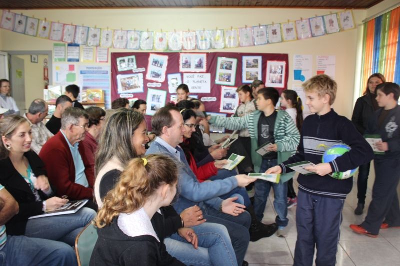 Exemplo de cidadania e sustentabilidade resume o projeto apresentado essa semana pela Escola Municipal de Ensino Fundamental Duque de Caxias, de Arroio Grande. Com um folder explicativo em mãos, os alunos da localidade apresentaram para pais, professores, autoridades e imprensa, dicas de separação de lixo reciclável e orgânico e demais ações de preservação do meio ambiente. A iniciativa surgiu a partir de uma reunião comunitária promovida pela administração municipal no Distrito. Na ocasião, abordou-se a questão do descarte correto de resíduos orgânicos e secos e a disposição dos mesmos nas lixeiras da localidade. O assunto gerou um novo encontro, com orientação de profissionais do Meio Ambiente, onde foi ressaltada a importância da separação dos resíduos e da utilização do orgânico para produção de compostagem e uso em hortas. A partir disso iniciou uma mobilização entre escola e comunidade local. Entre as ações, destaque para a roda de conversa com a professora, bióloga e moradora do Distrito, Salete Sebastiany Alves, montagem de murais explicativos sobre a separação correta dos resíduos, incentivo do uso de sacolas de pano, recolhimento de tampas de garrafa pet para a Liga Feminina de Combate ao Câncer, entre outros. Todas as ações iniciaram pela escola e famílias dos 38 alunos. Para a produção do folder que será entregue aos moradores de Arroio Grande, a escola desafiou os alunos a criar um mascote. O vencedor foi Daniel Alex Müller, aluno do 5º ano, que desenhou o Planeta Terra segurando sacos de lixo orgânico e reciclável em lados opostos. –Pensei numa forma de ajudar o mundo, cuidando do meio ambiente–, explica Alex, relacionando-se ao que o inspirou para desenhar o mascote que ilustra o folder. O próximo passo do projeto, segundo a diretora Magda Rockenbach, é a visita dos alunos às casas dos moradores da localidade, para distribuição dos folders e conscientização da importância de cada pessoa fazer a sua parte na preservação do meio ambiente e limpeza do local onde mora. –Queremos agradecer a comunidade de Arroio Grande pela bela iniciativa e grande exemplo que estão dando para todos–, parabeniza o Prefeito Sidnei Eckert. –Sempre aprendemos com a comunidade nas reuniões comunitárias que promovemos–, afirma. –Essa é a prova de que cada um pode fazer a sua parte para melhorar o local em que vive. A família escola está de parabéns–, finaliza. Saiba o que são as reuniões comunitárias: São encontros realizados de forma descentralizada nas comunidades do interior do município, levando o Prefeito e seus assessores ao encontro dos moradores, com o objetivo de aproximar o elo entre os cidadãos e o Poder Público. Legenda: Alunos e professores produziram material explicativo a partir de estudos sobre descarte correto de resíduos. Próximo passo é compartilhar orientações com a comunidade; Fotos: Maica Viviane Gebing Texto: Assessoria de Imprensa