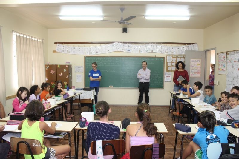 Além de lanche especial em comemoração ao Dia do Estudante – 11 de agosto - os alunos da Escola Municipal de Ensino Fundamental (EMEF) Construindo o Saber, bairro Navegantes, receberam a visita do Prefeito Sidnei Eckert e Secretária da Educação e Cultura, Eluise Hammes. Os representantes do Executivo estiveram no local para conferir as melhorias executadas nos banheiros feminino e masculino, com a execução de dois escovários para melhor atender os alunos, além da troca dos azulejos da cozinha/refeitório. Num investimento próximo a R$ 6 mil, os escovários permitem que 12 alunos escovem os dentes simultaneamente, incentivando o hábito da higiene bucal. Conforme a Secretária Eluise, o investimento vem para qualificar o atendimento e a proposta educacional dos alunos em tempo integral. Segundo a diretora Márcia Thomé, a Escola possui 113 alunos matriculados, da Educação Infantil e Séries Iniciais até o 5º ano. –Os pequenos frequentam a escola em turno integral e realizam diariamente a escovação dentária na escola–, explica. –Os escovários primam pela facilidade de acesso, higiene e organização do espaço–, reforça. Em 2014, a Escola foi beneficiada com a construção de uma nova sala de aula para atender a Educação Infantil, num investimento de R$ 91.500,00, provenientes de recursos próprios do município. Antes disso, em 2013, a administração municipal construiu uma quadra coberta de esportes de 814m², num investimento próximo a R$ 200 mil, oriundos de emenda parlamentar, somado à contrapartida do Executivo. O espaço oferece opções para a prática de futebol, voleibol e basquete e é utilizado diariamente pelos alunos e comunidade em geral. Legenda: Prefeito e Secretária aproveitaram para cumprimentar alunos pelo Dia do Estudante; Fotos: Maica Viviane Gebing e arquivo Escola Texto: Assessoria de Imprensa