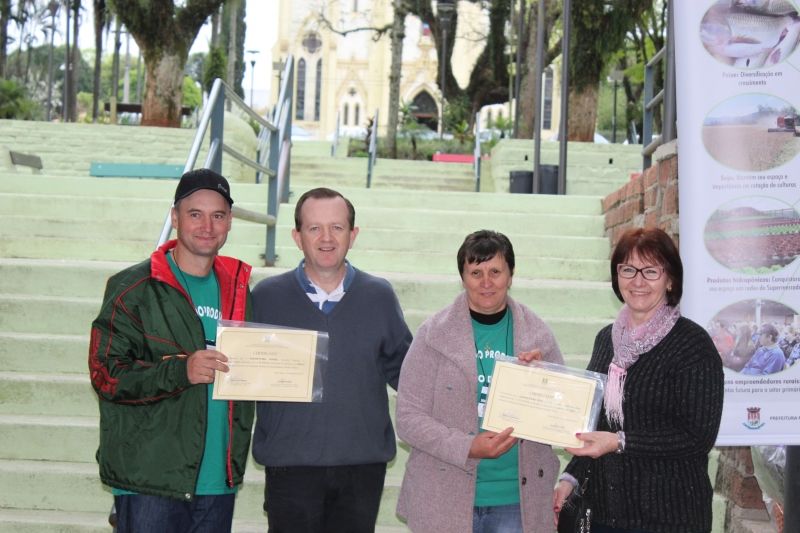 Os cinco anos da Feira do Produtor foram comemorados em verdadeiro clima de festa, com direito a apresentações artísticas, degustações, Feira de Artesanato e uma variedade de mais de 50 produtos coloniais à venda, ofertadas pelas 15 famílias de produtores rurais atuantes na Feira semanal. O evento foi realizado na manhã do último sábado, 5, na Rua de Eventos, que ficou lotada de clientes, amigos, autoridades, feirantes e simpatizantes da causa. Em breve cerimônia oficial, o feirante Inácio Hammes agradeceu, em nome dos demais produtores, ressaltando o Poder Público e demais forças que se uniram para o retorno da Feira. O produtor lembrou da qualidade dos produtos oferecidos, fazendo uma ressalva aos perigos da transgenia à sociedade. Representando os clientes, Darci Schwarzer falou das vantagens da alimentação saudável. –Nossa família consome os produtos aqui oferecidos desde que a Feira existe, porque são diferentes, orgânicos, de excelente qualidade e fazem bem à saúde–, orienta. O Prefeito Sidnei Eckert relembrou a mobilização para o retorno da Feira, em 2009, quando alguns produtores estavam desacreditados do projeto. –Unimos forças entre o Poder Público, STR, Conar, Emater e produtores e os resultados estão aí para serem vistos–, resgatou. –Queremos uma feira cada vez mais forte–, salientou. Pronunciaram-se ainda o Presidente do Conselho Arroio-meense de Desenvolvimento Rural (Conar), Rafael Rohenkhol, Presidente da Câmara de Vereadores, Adiles Meyer e Supervisor Regional da Emater, João Francisco Caino. Frequentadora assídua da Feira, Clea Theves, 56, garante que o custo benefício da alimentação saudável é diretamente percebido na saúde. –Não gasto dinheiro em farmácia–, afirma. Com a sacola reaproveitável em mãos, Clea comprou ovos, melado, garapa e verduras para ela, o marido e a filha vegetariana. A Feira do Produtor é realizada todos os sábados pela manhã, das 8h às 11, na Rua de Eventos, junto à Praça Flores da Cunha, numa promoção da Prefeitura Municipal, Secretaria da Agricultura, Emater e produtores rurais de Arroio do Meio. Legenda: Durante o evento, as agroindústrias Lansing e Petry receberam o certificado do Programa Estadual de Agroindústria Familiar; Fotos: Maica Viviane Gebing Texto: Assessoria de Imprensa