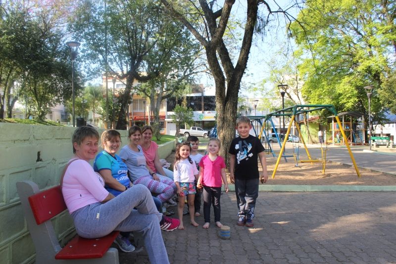 Enquanto os pequenos se divertem no playground, as mamães e responsáveis sentam-se à sombra para conversar e tomar o chimarrão. Essa é a rotina diária nas tardes das amigas Cisa Letícia Scheibler, mãe de Francisco, 6 anos, Margarete Friedrich, mãe de Caroline, 3, Joice Compagnone, mãe de Hutiere, 9 e Raquel Schroeder, babá dos gêmeos Lorenzo e Martina, 4. Pensando principalmente neste público formado pelas famílias e também nas demais pessoas que frequentam a democrática e aconchegante Praça Flores da Cunha, localizada no coração da cidade, a administração municipal providenciou a instalação e o conserto de bancos, totalizando 16 novos assentos para os públicos de todas as idades que procuram a praça em busca de sombra, descanso e lazer. Além de instalados, os bancos foram fixados, para evitar que sejam removidos e estragados. O investimento foi de R$ 3.600,00. –Agora não precisamos mais trazer cadeiras. É mais prático e seguro poder sentar perto das crianças, enquanto elas brincam–, afirmam as amigas em coro. –Nossa praça é muito bonita, limpa e organizada–, elogiam. A Praça Flores da Cunha recebe frequentemente outras melhorias e serviços de manutenção. Além da limpeza diária realizada no local pela equipe do Departamento Municipal de Serviços Urbanos, e pintura constante, o espaço de encontro da comunidade recebeu recentemente um novo projeto de ajardinamento. Em 2012, uma revitalização total garantiu um novo playground, arquibancadas, pavimentação dos passeios e sistema de iluminação, num investimento superior a R$ 300 mil, garantindo um espaço mais seguro e atrativo para as famílias arroio-meenses. Legenda: Usuárias afirmam que novos bancos trazem mais conforto para o público da Praça. Fotos: Maica Viviane Gebing Texto: Assessoria de Imprensa