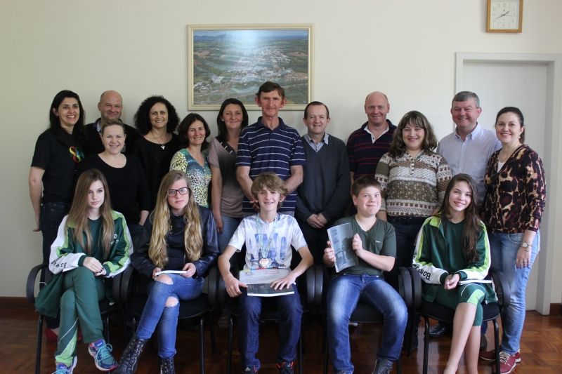 Em reconhecimento ao empenho e resultados positivos de alunos do município em concursos regionais, estaduais e nacionais, a administração municipal promoveu um encontro essa semana no Gabinete do Executivo. Participaram os alunos destaque e seus pais, Prefeito Sidnei Eckert, vice Áurio Scherer, Secretária de Educação e Cultura Eluíse Hammes, Coordenadora Pedagógica Naiara Tres, diretora e professora da Escola Bela Vista, Veranisa Facchini e Maristela de Almeida. Na oportunidade, os alunos das Escolas Municipais de Ensino Fundamental (EMEFs) Bela Vista e Professor Arlindo Back, Alan Spaniol e Janaína Baron, respectivamente, e os alunos do Colégio Bom Jesus, José Victor Träsel, Júlia Scheid Zimmer e Luana Lange Barth, compartilharam suas experiências sobre os estudos e as consequentes conquistas. Orgulhosos, os pais falaram sobre o desempenho dos filhos e a qualidade de ensino do município. –As escolas do município estão de parabéns, temos excelentes profissionais–, elogiou uma das mães. Eckert parabenizou os alunos pelo empenho e resultados, e os pais pela dedicação e envolvimento na rotina dos filhos. –A oportunidade está aí para todos. É muito importante quando os pais acompanham de perto a evolução dos filhos. Estão todos de parabéns–, elogiou. A Secretária Eluise reforçou a importância das conquistas. –Vocês servem de exemplo para outros estudantes–, afirma. –Temos grandes potenciais em nosso município, que podem ser transformados em grandes talentos–, aposta. Saiba mais sobre a Educação de Arroio do Meio: A administração municipal investe 35% do orçamento do município na área da Educação, o que representa cerca de R$ 15 milhões/anual. Ao todo, conta com 13 Escolas Municipais de Ensino Fundamental (EMEFs), mais oito Escolas Comunitárias de Educação Infantil (ECEIs). Com projetos voltados para a Educação Integral, o estreitamento de laços entre Escola e Família, valorização das escolas rurais, formação continuada para os professores e funcionários, soma ações que buscam melhorar a cada dia a qualidade do ensino oferecida aos 2.020 alunos do Ensino Fundamental e 750 crianças da Educação Infantil. Legenda: Representantes da administração municipal, Secretaria de Educação, escola, pais e alunos premiados pelos desempenhos na escrita, leitura e matemática; Fotos: Maica Viviane Gebing Texto: Assessoria de Imprensa