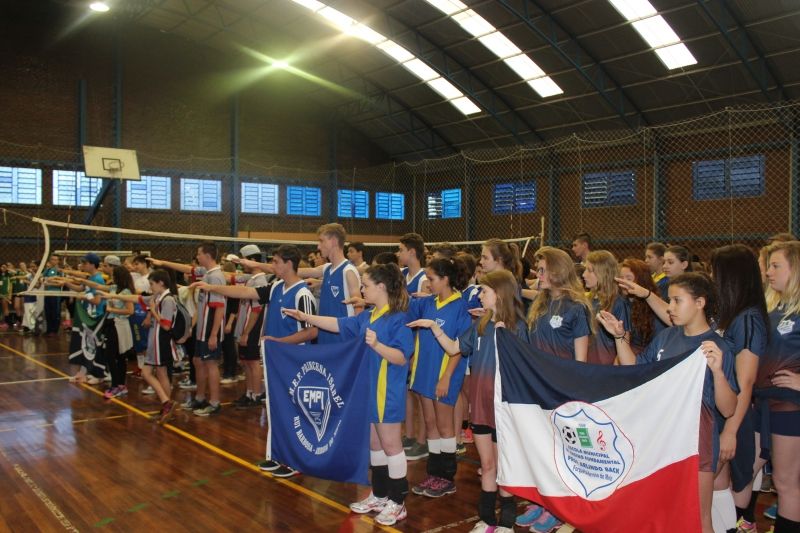 ARROIO DO MEIO – Na próxima quinta-feira, 12, ocorre a etapa de Mini Vôlei das Olimpíadas Estudantis 2015, encerrando a competição que iniciou em maio e seguiu com diferentes modalidades durante o ano. Os jogos de integração serão realizados no Ginásio do Colégio Bom Jesus, a partir das 8h, envolvendo cerca de 200 alunos da categoria Pré-Mirim (2004/2005) Feminino/Masculino. Na última semana (27 e 28 de outubro), foi realizada a etapa Voleibol, envolvendo cerca de 270 atletas nas categorias Mirim e Infantil/Masculino e Feminino. Durante o ano aconteceram ainda as etapas de Atletismo, Handebol, Jogos Inteligentes e Futsal, envolvendo centenas de alunos nas competições realizadas nos ginásios do município. Com o slogan –Um passo adiante–, as Olimpíadas Estudantis são realizadas anualmente envolvendo alunos da rede municipal, estadual e particular de ensino. O principal objetivo é integrar os estudantes do ensino fundamental em atividades desportivas, incentivando o trabalho em equipe, espírito competitivo, hábitos saudáveis e disciplina. A competição é uma promoção da administração municipal, através da Secretaria de Educação e Cultura e Departamento de Esportes, e conta com o apoio dos professores de Educação Física e diretoras das escolas participantes. Legenda: Cerca de 270 alunos participaram da etapa Voleibol, realizada na última semana. Fotos: Maica Viviane Gebing Texto: Assessoria de Imprensa