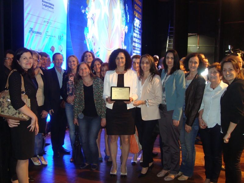 Em cerimônia realizada na noite da última terça-feira, 10, no Teatro Dante Barone/Assembleia Legislativa, em Porto Alegre, Arroio do Meio recebeu certificado de reconhecimento pela participação no 14º Prêmio Gestor Público, por meio do projeto Escola Inclusiva – Educação para Todos. Sob o tema –Proteção à infância e à adolescência", o grande vencedor da noite foi a cidade de Farroupilha, com o projeto –Educação Digital no fazer pedagógico–. Ao todo, 84 cidades gaúchas inscreveram 170 projetos para avaliação. Desenvolvido desde 2009 no município, o projeto Escola Inclusiva – Educação para Todos, atende mais de 50 alunos com necessidades educativas especiais nas Escolas Municipais de Ensino Fundamental (EMEFs). O objetivo, segundo a Secretária de Educação e Cultura, Eluise Hammes, é incluir estas crianças na escola regular, oferecendo uma educação de qualidade para todos os alunos. –O projeto busca a construção de um sistema educacional inclusivo, através da promoção de ações que tenham como foco a equalização de oportunidades e a garantia do direito de uma educação de qualidade para todos–, explica. Entre as principais ações do projeto estão a formação para os professores; implantação de salas de recurso nas escolas para atendimento das crianças e adolescentes com deficiências; reelaboração do projeto político pedagógico; adequações físicas de promoção à acessibilidade; adesão a convênios específicos e ampliação de vagas na APAE; transporte escolar diário para alunos e famílias usufruírem de atendimentos; concurso público para monitoras realizarem atendimento individualizado, entre outros. O Prêmio Gestor Público é promovido desde 2002, pelo Sindicato dos Servidores Públicos da Administração Tributária do RS (Sindifisco-RS) e pela Associação dos Fiscais de Tributos Estaduais do RS (Afisvec), entidades representativas dos Auditores-Fiscais da Receita Estadual do RS. O objetivo é conhecer, avaliar e premiar bons projetos das administrações públicas municipais do Estado. Legenda: Prefeito Sidnei Eckert, vice Áurio Scherer, Secretária de Educação e Cultura Eluise Hammes e demais representantes da Educação do município participaram de cerimônia de certificação. Fotos: Divulgação Texto: Assessoria de Imprensa