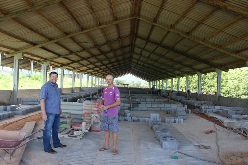 ARROIO DO MEIO – Até o mês de março, mais dois mil suínos do ciclo de terminação devem ser alojados na propriedade de Rafael Rohenkohl (34), na localidade de Passo do Corvo, triplicando a capacidade de produção do empreendimento do jovem produtor rural, que atualmente comporta três lotes anuais de mil suínos em um pavilhão. O investimento é superior a R$ 1 milhão, incluindo dois pavilhões de 1.360m² cada, mais uma área de compostagem, totalizando 3.780m². Para o secretário da Agricultura, Paulo Heck, o empreendimento é reflexo do crescimento do setor primário no Município e dos avanços de sucessão familiar, com a permanência e/ou retorno do jovem ao campo. Rohenkohl retornou às atividades na propriedade da família há quase quatro anos, após uma década atuando como industriário. Flexibilidade de horários e perspectivas de crescimento em torno do negócio próprio foram fatores decisivos para a retomada, segundo o produtor. Como forma de incentivo ao empreendimento, a Administração Municipal executou cerca de 180 horas de serviços de máquina para conclusão da terraplenagem da área onde foram construídos os pavilhões. –O apoio da secretaria da Agricultura fez muita diferença para o empreendimento, me proporcionando uma grande economia–, afirma o produtor Rohenkohl. De acordo com Heck, mais de duas mil horas máquinas foram executadas em 2015 em propriedades rurais, como forma de incentivo a novos investimentos, ampliações de existentes, terraplenagens para suinocultura, bovinocultura de leite e piscicultura. Legenda: Secretário Heck e produtor Rohenkohl acompanham o avanço da obra, prevista para estar conclusa em março. Fotos: Maica Viviane Gebing Texto: Assessoria de Imprensa