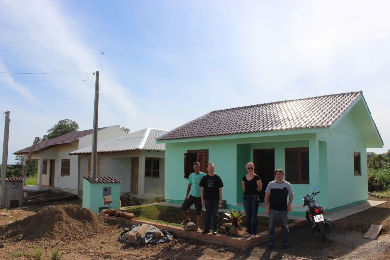 ARROIO DO MEIO – Já está devidamente instalado o primeiro morador dentre os 23 beneficiados do Loteamento Econômico Dona Rita/São Caetano. Feliz, o industriário Ricardo Lay, 47 anos, recebeu essa semana a visita do Prefeito Sidnei Eckert, Secretário de Planejamento Henrique Meneghini e servidora responsável pelo cadastramento do Programa Habitacional, Cintia Gräff. Orgulhoso, mostrou sua nova casa de 50m², com sala, cozinha, banheiro, quartos e um jardim em construção. Há poucos dias instalado, Lay comemora a conquista da casa própria, após anos pagando aluguel. –Isso significa tudo para mim, é um sonho realizado–, afirma. –Seria complicado demais eu conseguir a minha casa própria se não fosse dessa forma, acho que nem teria como–, analisa. Além de Lay, mais 13 beneficiados já assinaram os contratos junto à instituição bancária ou estão em fase de aprovação. Os lotes foram sorteados em janeiro, beneficiando 23 famílias com terrenos ao valor simbólico de custo – R$ 14.435,00. –A gente fica extremamente feliz em ver a felicidade dessas pessoas realizando o sonho da casa própria–, enfatiza Eckert. –Um projeto feito com muito planejamento, pensando no bem-estar do nosso cidadão e no crescimento ordenado do nosso município–, afirma o Prefeito. O Loteamento foi viabilizado de forma inovadora, a partir de uma parceria entre administração municipal e proprietário da área de 21.787,12 m², a partir da Lei nº 2.894/2010, autorizando a instituição do Programa Habitacional de Loteamento Residencial. Em face dos serviços de infraestrutura executados pelo Poder Público no local, num investimento de cerca de R$ 400 mil, os proprietários cederam 28 lotes ao município, com 230m² cada. O projeto também permitiu a regularização de lotes que se encontravam em situação irregular na área que originou o loteamento. Ao todo, 109 famílias se cadastraram no Centro de Referência da Assistência Social, das quais, 80 foram pré-classificadas, de acordo com requisitos estipulados em edital de credenciamento, considerando renda familiar de até três salários mínimos, residência há mais de cinco anos no município e tempo comprovado de emprego fixo, entre outros. Legenda: Prefeito Eckert, Secretário Meneghini e servidora Cíntia visitaram Lay, primeiro morador dentre os 23 beneficiados com lotes econômicos. Fotos: Maica Viviane Gebing Texto: Assessoria de Imprensa