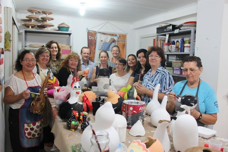 ARROIO DO MEIO – Em menos de 15 dias, dois cursos de artesanato foram realizados na Casa do Museu, sob coordenação do Serviço Nacional de Aprendizagem Rural (Senar), numa parceria com o Sindicato dos Trabalhadores Rurais de Lajeado (STR), mobilizando 22 alunas/artesãs em 72 horas de qualificação. O primeiro aconteceu no período de 8 a 11, quando a artesã Marlusa Carvalho ministrou técnicas sobre Artesanato em Porongo, desde o trato, limpeza, manuseio, pintura, texturização até a produção final de peças de porongo. Essa semana (14 a 18) foi a vez da artesã pelotense Márcia Viana Duran retornar ao Município para ministrar o curso de Tecelagem e Feltragem com lã de ovelha. Atentas, as alunas aprenderam o passo a passo desde a retirada da lã do animal, dicas sobre as raças mais apropriadas para a lã de qualidade, lavagem, tingimento, preparação do tear e acabamento de peças com lã de ovelha. Aluna estreante nos cursos de diversificação e qualificação do artesanato local, recém ingressa na Associação das Artesãs de Arroio do Meio, Idima Marques participou dos dois cursos e aprovou a experiência. –Nos dois cursos, aprendemos desde o início do processo. Para mim foi tudo novidade e uma volta aos antepassados–, afirma. Experiente nos cursos promovidos no Município, a agricultora Sônia Ana Dier Eckert, 64, afirma que aprendeu bastante com a tecelagem. –Já tinha tentado produzir peças sem saber as técnicas. Agora vai ficar bem mais fácil–, aposta. Segundo a dirigente cultural, Angélica Diefenthaler, pelo menos mais dois cursos serão realizados ainda este ano – Tear, em agosto e Macramê, em outubro. Desde 2009, mais de 30 cursos ministrados pelo Senar foram promovidos em Arroio do Meio, qualificando e diversificando o setor primário e o artesanato local. Legenda: Prefeito Sidnei Eckert junto a alunas e instrutora do curso de artesanato em porongo; Fotos: Maica Viviane Gebing Texto: Assessoria de Imprensa