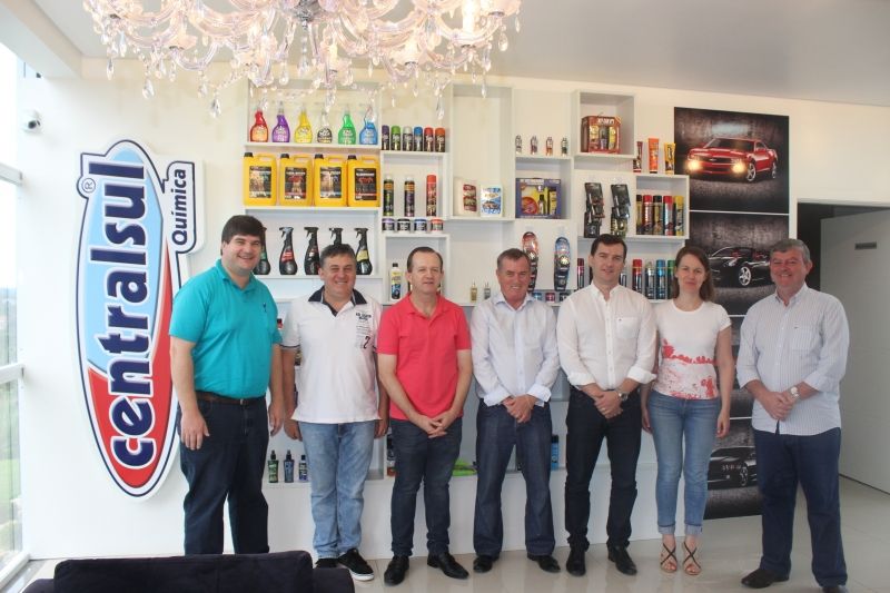 ARROIO DO MEIO – A semana iniciou com uma visita à Centralsul Indústria e Comércio de Produtos Químicos Ltda, para o Prefeito Sidnei Eckert, vice Áurio Scherer, Coordenador das Secretarias Klaus Werner Schnack e Secretário de Indústria, Comércio e Turismo, Norberto Dalpian. Na empresa familiar localizada às margens da ERS 130, bairro São Caetano, foram recebidos pelos Diretores Olívio, Michel e Karine Schott. A Centralsul é a terceira empresa incentivada pelo Município visitada por representantes da Administração Municipal durante o mês de abril, como forma de confirmar a aplicação dos recursos públicos e o desenvolvimento econômico de Arroio do Meio. Durante o encontro, os diretores lembraram do acolhimento com que foram recebidos no Município e da satisfação dos recentes resultados. Entre as conquistas, apresentaram a publicação do mês de fevereiro da revista de circulação nacional 4 Rodas, que classifica a qualidade do produto local conhecido como pretinho de pneu em aerossol, à frente de um produto americano. Além disso, a premiação nacional em 2015, pela linha de produtos com embalagem elaborada com plástico verde produzido a partir da cana de açúcar. –Mais uma empresa que soma com excelência junto ao nosso foco na diversificação econômica, geração de emprego e renda para a nossa comunidade, levando o nome de Arroio do Meio para todos os cantos do país e região Mercosul, ultrapassando fronteiras–, orgulha-se o Prefeito Eckert. Com 20 anos de atuação no setor de produtos químicos automotivos, a Centralsul tem cerca de 150 produtos em seu portfólio, atendendo o mercado nacional e parte do Mercosul. O prédio inaugurado em 2013 tem 2 mil m² de área construída, onde atuam cerca de 40 colaboradores, junto a maquinários de tecnologia avançada. Ainda em 2011 a Administração Municipal assinou o contrato de concessão de uma área de terras à empresa, avaliada em R$ 280 mil, além de executar serviços de terraplenagem e adequações no terreno e acesso, como forma de atração e incentivo ao empreendimento, que fortalece a diversificação econômica de Arroio do Meio. Legenda 1: Representantes da empresa e Administração Municipal junto ao produto premiado nacionalmente; Legenda 2: Administração Municipal em visita à empresa Centralsul. Fotos: Maica Viviane Gebing Texto: Assessoria de Imprensa