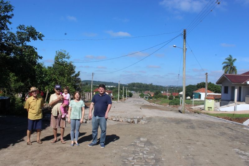 ARROIO DO MEIO – Os moradores da rua Pernambuco, bairro Aimoré, comemoram a agilidade na execução da pavimentação da via. Com detalhes a serem finalizados, a obra iniciada em fevereiro, a partir de uma iniciativa dos moradores, beneficia 10 lotes, somando 1.065 m² de calçamento. A transversal fica entre a rua Friedoldh Kuhn, também em obras de calçamento, e o Loteamento Arno Bruxel, que liga a via à avenida asfaltada Helmuth Kuhn. Adiantando-se à lei 3.269/2014, que prevê a responsabilidade exclusiva do loteador na instalação de redes de drenagem pluvial, iluminação pública e pavimentação, o Loteamento também executou 788m² de calçamento. A união entre os moradores e o loteador elimina os problemas de barro e poeira na via. Segundo a moradora Elaine Loch, a ideia iniciou entre os moradores, motivados pela obra de pavimentação da rua Friedoldh Kuhn, executada numa parceria entre moradores e Poder Público, beneficiando 30 lotes/famílias, além da área pública municipal, onde estão instalados o Posto de Saúde e academia ao ar livre do bairro, somando 4.081,91m² de pavimentação com rede de drenagem. –Chegamos num consenso entre vizinhos e procuramos a Prefeitura para nos informar a respeito dos trâmites burocráticos–, explica Elaine. –Deu tudo certo e foi mais rápido do que imaginávamos–, comemora. O Prefeito Sidnei Eckert elogia a iniciativa dos moradores. –Atitudes como essa potencializam o desenvolvimento do Município–, afirma. –Arroio do Meio cresce a olhos vistos e o Poder Público não tem como dar conta desta demanda sem a parceria com a iniciativa privada–, diz. Essa semana iniciou também a pavimentação comunitária da rua São Miguel, bairro Barra do Forqueta, numa parceria entre Administração Municipal e moradores. Legenda: Secretário de Planejamento Henrique Meneghini, junto aos moradores Elaine Loch, Clécio Pereira e Arno Bruxel. Fotos: Maica Viviane Gebing Texto: Assessoria de Imprensa