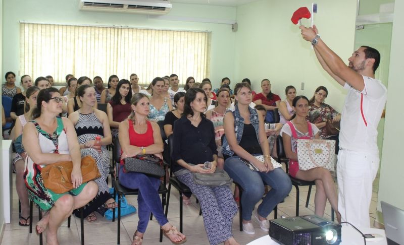 ARROIO DO MEIO – A poucos dias de dar à luz a Mirella, a jovem mamãe Andreia Krämer, 21, participou do seu quinto encontro de gestantes, realizado mensalmente no Posto de Saúde Central/Secretaria Municipal de Saúde. Na companhia de 40 gestantes, aprendeu dicas de saúde bucal, sob orientação do dentista Gilberto Goltz Gouvêa Filho. –Sempre tiro dúvidas e aprendo coisas novas com os profissionais e as outras gestantes–, afirma Andreia. –Participo porque gosto e acho muito interessante–. Os encontros de saúde preventiva ocorrem mensalmente no Posto de Saúde do Município e são marcados por diferentes dinâmicas, ministrados por profissionais de saúde que abordam assuntos relacionados ao período gestacional. Todas as grávidas do município podem participar. O principal objetivo é o acompanhamento da gestação desde o início, tendo em vista a importância do pré-natal para a saúde das futuras mamães e o desenvolvimento adequado dos bebês. Além do Grupo de Gestantes, a Secretaria coordena outros grupos de saúde que mantém acompanhamentos semanais, quinzenais e mensais, incluindo o Grupo de Hipertensos, Diabéticos e Crônicos; Grupos de Ginástica e Reeducação Alimentar. Interessados em participar podem se informar nos Postos de Saúde dos bairros, que também sediam os encontros. Legenda: Dentista repassou dicas da saúde bucal das mamães e dos bebês. Fotos: Maica Viviane Gebing Texto: Assessoria de Imprensa