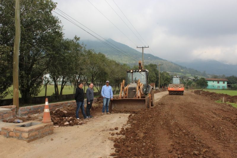ARROIO DO MEIO – Dando continuidade à obra de pavimentação asfáltica da estrada geral de Palmas/trecho lateral Esporte Clube Palmense, estão sendo executadas essa semana as etapas de drenagem pluvial, instalação de galeria e terraplenagem da via. A obra iniciou na segunda quinzena de janeiro e deve ser concluída em cinco meses, a cargo da empresa Coesul, contratada pela Administração Municipal, via processo licitatório. Inicialmente serão executados 2.232,50m² de asfalto, num investimento de R$ 304 mil, dos quais, R$ 250 mil provenientes de emenda parlamentar, via Ministério das Cidades/Governo Federal, somados à contrapartida do Município. No entanto, a galeria pluvial faz parte da segunda etapa da obra, financiada integralmente com recursos do Município. Esse trecho corresponde a 1.355m², num investimento de R$ 182.605,05. Juntas, as duas etapas somam 3.587,50m² de pavimentação asfáltica, num investimento total de R$ 486.605,05, dos quais, R$ 236.605,05 de recursos próprios. Além de Palmas, as obras asfálticas de Forqueta Baixa e Picada Arroio do Meio também estão em execução, totalizando um investimento de R$ 1,5 milhão em asfaltos para o interior. –Tivemos a conquista dos recursos e estamos fazendo tudo que está ao nosso alcance, no entanto, considerando a grave situação do Governo Federal, estamos preocupados com a liberação dessas verbas para garantir a conclusão dessas pavimentações–, alerta o Prefeito Sidnei Eckert. Legenda: Prefeito Eckert, engenheiro Aldir De Bona e representante da empresa executora acompanham etapa de drenagem e terraplenagem da via. Fotos: Maica Viviane Gebing Texto: Assessoria de Imprensa