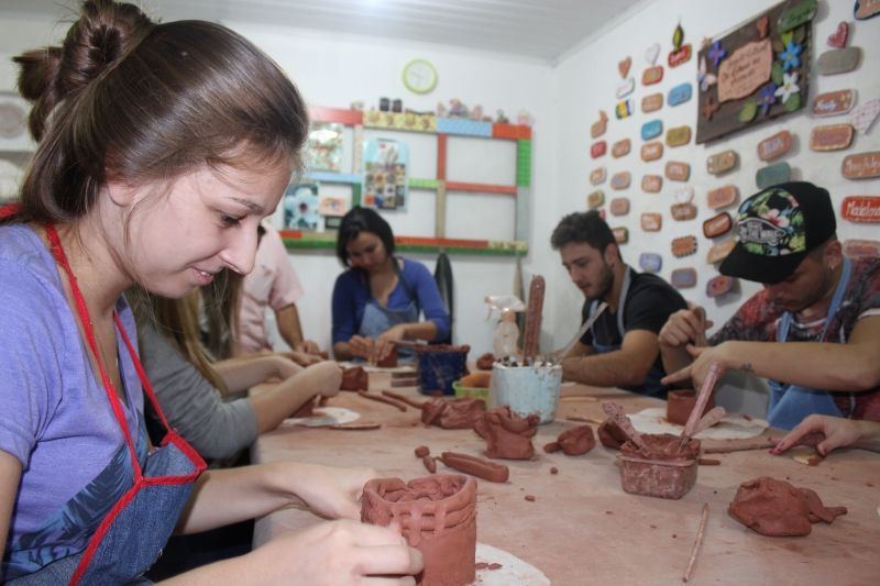 ARROIO DO MEIO – A Casa do Museu desenvolveu oficinas de cerâmica com acadêmicos do curso de Odontologia da Univates. Os encontros semanais aconteceram durante o mês de abril, envolvendo 34 alunos de 17 a 22 anos, dos 1º e 2º semestres, em aulas práticas de manipulação de argila e construção de placas e recipientes de cerâmica. O objetivo, segundo o Coordenador do curso de Odontologia da Univates, Maurício Fernando Nunes Teixeira, foi desenvolver assuntos relacionados à cerâmica odontológica, que será trabalhada de forma minuciosa a partir do sexto semestre. –Iniciamos com este trabalho de sensibilização para prepará-los para os próximos desafios–, afirma. O contato se fez por intermédio da Clínica Universitária Regional de Educação e Saúde (CURES), com a qual o Município mantém convênio para o desenvolvimento de projetos de educação e saúde pública. –Queremos agradecer a Prefeitura de Arroio do Meio por ter aberto as portas para nossos alunos–, agradece o professor. Aluna do segundo semestre de Odontologia, Eduarda Renata Ariotti, 18, afirma que a experiência foi enriquecedora. –No primeiro momento visitamos uma escola municipal e posto de saúde, e percebemos que a rede de apoio funciona muito bem em Arroio do Meio–, relembra. –A experiência com a cerâmica foi importante porque esse semestre ainda, começo a esculpir dentes em blocos de cera com instrumento odontológico e a textura da argila usada nas oficinas nos dá uma noção do que teremos em sala de aula–, explica. Para a dirigente cultural, Angelica Diefenthaler, esta interface com a universidade aponta para a importância da Casa do Museu no contexto regional. –Soma-se ao museu, espaço de pesquisa e memória, os espaços interativos como a sala de cinema e o atelier de cerâmica, oportunizando múltiplas ações num único espaço, reforçando assim a ideia de museu vivo e espaços dinâmicos", afirma. Legenda: Parte dos alunos em oficina com a ceramista do Museu, Cláudia Jung. Fotos: Maica Viviane Gebing Texto: Assessoria de Imprensa