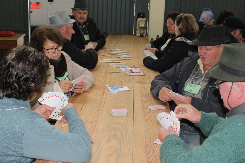 ARROIO DO MEIO – Um misto de concentração e integração marcou o 2º Torneio de Canastra da Terceira Idade, realizado nessa quarta-feira, 22, no salão comunitário do bairro Navegantes. O evento contou com a participação de 76 idosos/38 duplas – categorias Feminino, Masculino e Misto - representando 17 dos 20 grupos de Terceira Idade do Município. A organização foi do Conselho Municipal do Idoso e Centro de Referência da Assistência Social (CRAS), com apoio da professora voluntária Cloé Scheid, idealizadora do projeto Mente Ativa, que promove outros jogos de memória, raciocínio e concentração entre os idosos.
