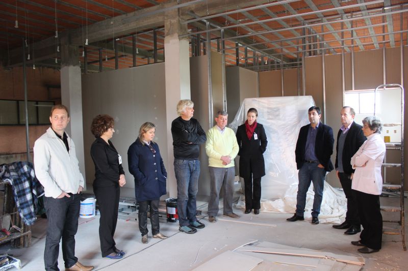 ARROIO DO MEIO – Em contramão às dificuldades que assolam a saúde pública do Estado, o Hospital São José (HSJ) está em fase de ampliação. Essa semana o Prefeito Sidnei Eckert, vice Áurio Scherer e Secretário Municipal da Saúde, Gustavo Zanotelli conheceram a obra que serve de base para o projeto de instalação da Unidade de Tratamento Intensivo (UTI) em Arroio do Meio, conforme projeto aprovado pela Vigilância Sanitária do Rio Grande do Sul. Guiados pelo diretor José Clóvis Soares e demais membros da equipe do HSJ, os representantes do Executivo acompanharam o andamento da obra que iniciou em fevereiro e segue até o final do ano.