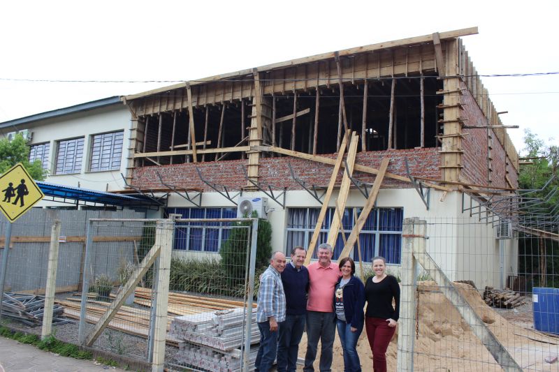 ARROIO DO MEIO – O novo espaço da Escola Municipal de Ensino Fundamental (EMEF) Princesa Isabel, do bairro Rui Barbosa, já está com as paredes erguidas e a laje de cobertura em fase de conclusão. A ampliação de 180m² é executada sobre o auditório construído em 2012, projetado na ocasião para a ampliação vertical. O investimento atual é de R$ 140 mil, e soma-se aos R$ 150 mil investidos na primeira etapa, ambos provenientes de recursos próprios do Município. A obra está por conta da Fontana & Orsolin Ltda Me, contratada via processo licitatório.