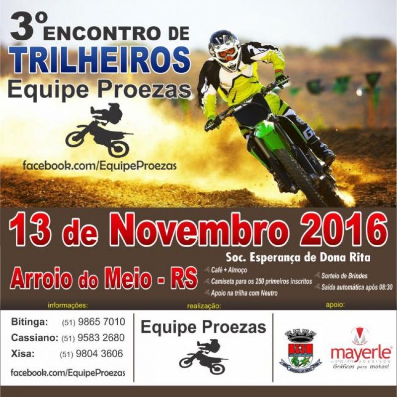 ARROIO DO MEIO – Depois do sucesso da 3º Volksmania/1º Encontro de carros antigos, ocorrido no último domingo, 6, no Centro, a programação de Aniversário do Município segue neste final de semana, quando ocorre o XIV Rodeio Crioulo Estadual (sexta a domingo - 11 a 13), no CTG Querência do Arroio do Meio; Feira do Peixe (sábado, 12, 8h30min), na propriedade de Délcio Bruxel, em Arroio Grande; e 3º Encontro de Trilheiros (domingo, 13), com concentração na Sociedade Esportiva Esperança, em Dona Rita.