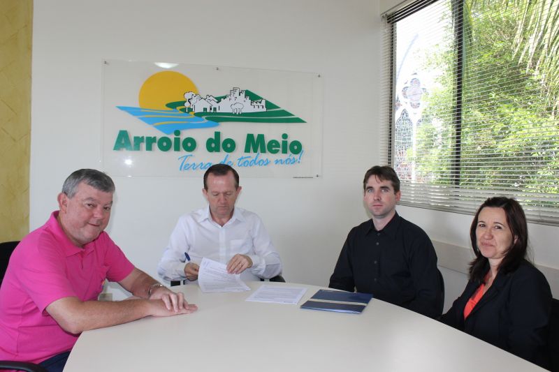 ARROIO DO MEIO – Foi assinado no dia 1º de dezembro, no Gabinete do Executivo, o contrato de repasse de R$ 245.850,00 para o Município, provenientes da emenda parlamentar do Deputado Federal Covatti Filho, intermediada pelo vereador Aldemir Gregori. Participaram da assinatura o Prefeito Sidnei Eckert, vice Áurio Scherer, Gerente da Caixa Econômica Federal, Fernando Forneck e coordenadora de projetos, Ieda Mallmann.