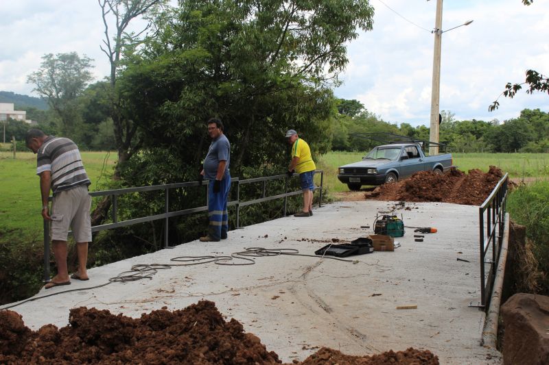 Em Dona Rita, no prolongamento da rua João Antônio Rauber, foi instalado um corrimão, para segurança dos pedestres que passam pelo local. Já no bairro Bela Vista/Loteamento Terra Bela, rua Balbuino Kuhn, foi executado reforço da sapata e da laje da ponte, além da instalação de corrimão.