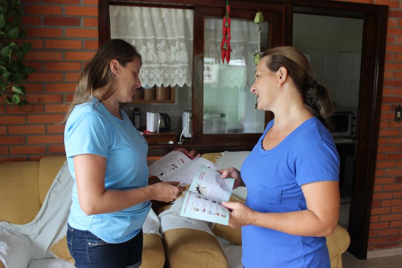 Em visita realizada essa semana à residência de Vera Lúcia Telöcken Schwarzer, em Rui Barbosa, a agente de saúde do bairro, Helena Meneghini, reforçou a importância do combate ao mosquito Aedes aegypti, assunto que já vem sendo tratado de forma preventiva desde o mês de novembro, e apresentou o material informativo do projeto Nossa Cidade, Meu Lar, reforçando ações de prevenção e combate às pragas.