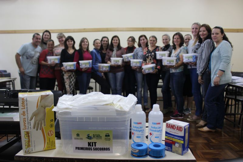 ARROIO DO MEIO – A Secretaria Municipal da Saúde distribuiu kits de primeiros socorros para as 13 Escolas Municipais de Ensino Fundamental (EMEFs) na última terça-feira, 2, durante reunião mensal das equipes diretivas das Escolas. O evento ocorreu na Secretaria Municipal de Educação e Cultura e contou com a participação do enfermeiro Rogério dos Santos Nunes, que deu orientações de prevenção, encaminhamentos e primeiros socorros em casos de quedas, machucados, desmaios e outros incidentes no ambiente escolar.