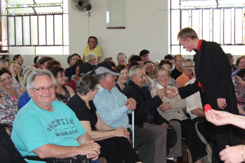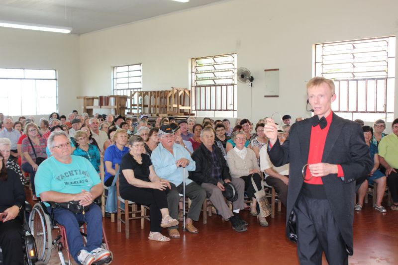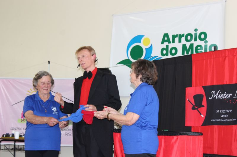 A programação iniciou com a apresentação do Grupo de Dança Sênior. Na sequência, o Prefeito Schnack parabenizou os avós pela data especial, ressaltando o quanto cada idoso já colaborou pelo Município. “Obrigado a todos que se empenharam para Arroio do Meio ser o Município que nos orgulha de viver hoje”, destacou. A tarde seguiu com a esperada apresentação do Mágico Mister L, que integrou os idosos em mágicas especialmente preparadas para eles.