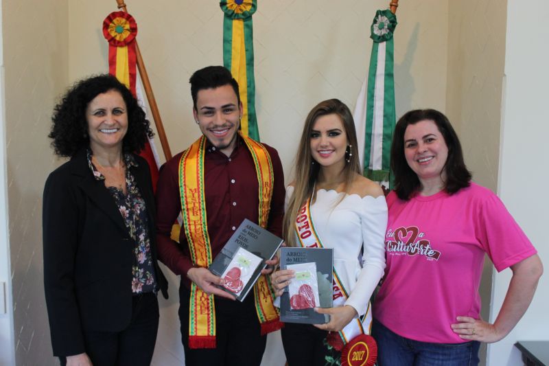 Na oportunidade, Eluise parabenizou os jovens e os presenteou com livros dos 75 anos de Arroio do Meio e corações de cerâmica produzidos nas oficinas da Casa do Museu. “Nos representaram em diferentes propósitos, levando o nome de Arroio do Meio para o Estado”, afirmou. “Se esforçaram, mobilizaram suas redes de amigos e familiares, carregando nosso Município no coração, só temos a agradecer”, concluiu.