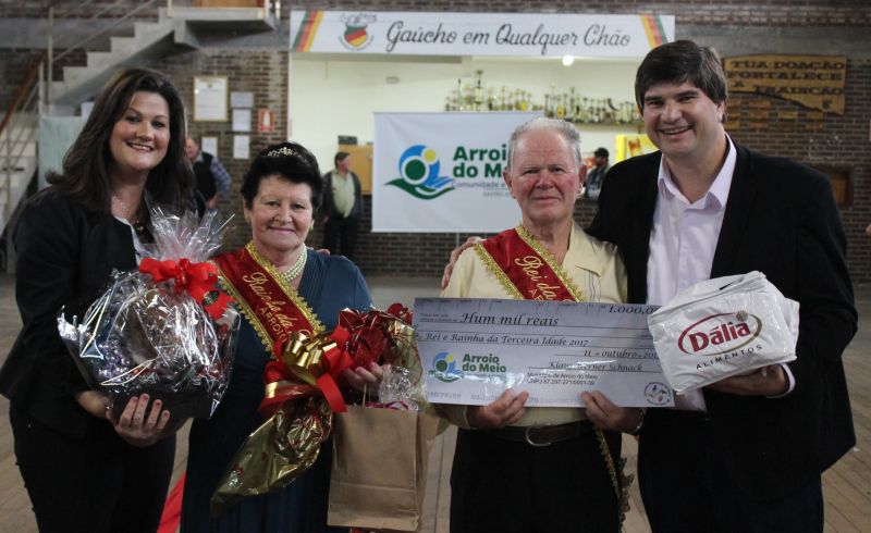 ARROIO DO MEIO – Natalício e Iraci Matte são os novos Rei e Rainha da Terceira Idade de Arroio do Meio. Com 72 e 68 anos, respectivamente, o casal participa do grupo Terceiro Milênio, do Centro, e representará os idosos do Município por dois anos. O evento que escolheu o Casal da Terceira Idade foi realizado na tarde da quarta-feira, 11, no CTG Querência de Arroio do Meio, na presença de autoridades e representantes dos 20 grupos de idosos locais.
