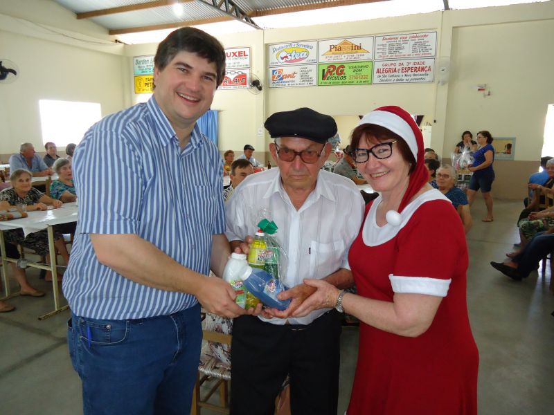 ARROIO DO MEIO – Com a proximidade de Natal e no clima dos festejos de final de ano, a Mamãe Noel representada pela servidora Adiles Meyer e a Coordenadora do Departamento de Idosos, Diana Ames, acompanhadas do Prefeito Klaus Werner Schnack e vice Eluise Hammes, visitaram os 20 grupos de Terceira Idade, com o intuito de levar uma mensagem natalina e de prosperidade aos idosos arroio-meenses.