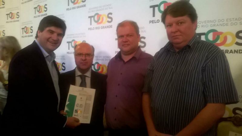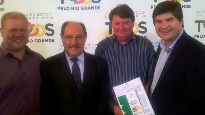 ARROIO DO MEIO – O Prefeito Klaus Werner Schnack assinou nessa quarta-feira, 13, o termo de cooperação do Sistema de Segurança Integrada com o Governo do Estado e demais Municípios. A solenidade aconteceu no Palácio do Piratini, na presença do Governador José Ivo Sartori, Secretário Estadual da Segurança Pública Cezar Schirmer e os representantes locais – Presidente da Câmara de Vereadores Paulo Volk e vereador Marcelo Schneider.