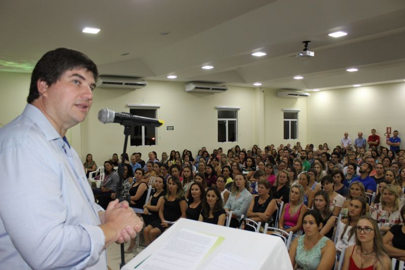 ARROIO DO MEIO – O Ano Letivo 2018 inicia nessa quarta-feira, 21, nas 13 Escolas Municipais de Ensino Fundamental (EMEFs) e Escola Estadual Guararapes, com o retorno de mais de 2.700 alunos. A abertura oficial ocorreu na noite da segunda-feira, 19, na Associação Comercial, Industrial e de Serviços de Arroio do Meio (ACISAM), na presença de 330 convidados, incluindo autoridades, equipes diretivas, coordenações pedagógicas, professores das redes municipal e estadual, monitores escolares e educadoras das Escolas Comunitárias de Educação Infantil (ECEIs) e representantes das diretorias das Associações de Pais.
