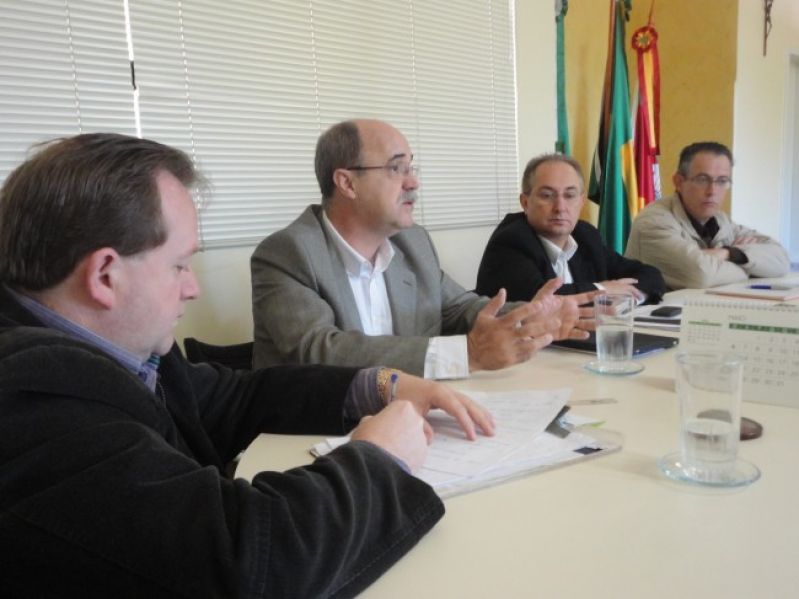A equipe diretiva da AES Sul esteve na manhã da última sexta-feira, dia 18, na Prefeitura Municipal, a pedido do Prefeito Sidnei Eckert, que cobrou maior atenção da concessionária em relação aos problemas de falta de energia que vêm ocorrendo em localidades do município, e pediu melhorias no fornecimento de energia para empresas, agricultores e comunidade em geral. Diante da situação apontada pelo Chefe do Executivo, o Diretor da AES Sul, Antonio Carlos Oliveira, afirmou que oito equipes já estão trabalhando na Região executando a troca de postes, e que parte dos problemas de falta de energia estão ligados com o alto índice de crescimento da demanda e nível de tensão no Vale do Taquari. Segundo Oliveira, já existe um projeto no valor de R$ 181 mil, incluindo 16 obras de universalização que atendem zonas urbana e rural do município, assim como o projeto de sete obras de tensão, no valor de R$ 116 mil. A equipe diretiva da AES Sul também adiantou que está prevista a construção de uma subestação em Arroio do Meio para 2014 e garantiu que vai tomar as devidas providências para executar as melhorias necessárias no município. Legenda: Reunião entre representantes do Executivo e da AES Sul para tratar de melhorias na rede de energia do município. Fotos: Maica Viviane Gebing Texto: Assessoria de Imprensa