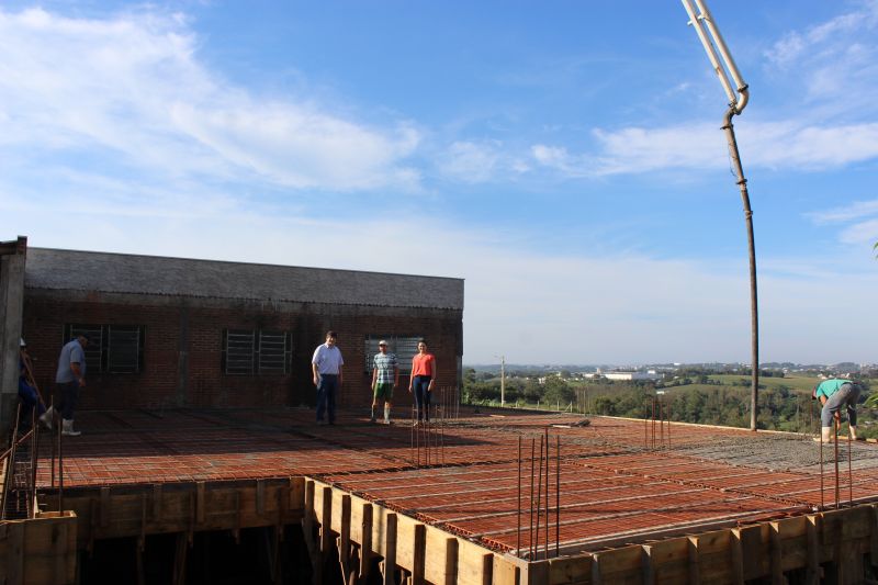 ARROIO DO MEIO – Foi executada essa semana a concretagem da laje e polimento do piso da obra de ampliação da Sede Municipal/Associação Esportiva e Recreativa Bola Cheia, localizada no Loteamento Antares, bairro Bela Vista. A obra reiniciou essa semana e segue com a execução de pilares e paredes, a cargo da empresa Pellegrini & Pellegrini Ltda.