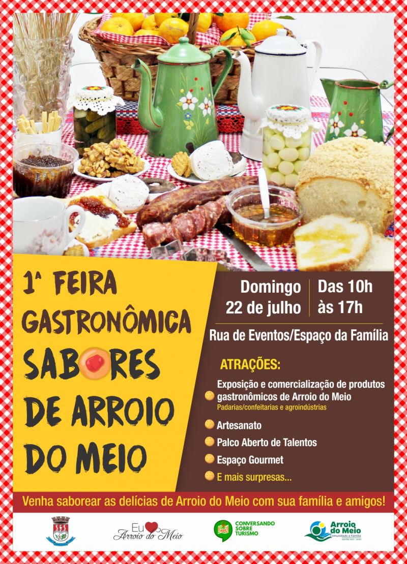A 1ª Feira Gastronômica Sabores de Arroio do Meio é uma iniciativa da Administração Municipal Comunidade e Família, por meio das Secretarias de Indústria, Comércio e Turismo e Educação e Cultura. O evento atende ao Plano de Governo da Gestão 2017/2020 e à temática abordada pelo grupo Conversando sobre Turismo, que se reúne mensalmente na Casa do Museu. Os principais objetivos são o fomento aos empreendedores locais e valorização da diversidade, cultura e qualidade dos alimentos produzidos em Arroio do Meio.