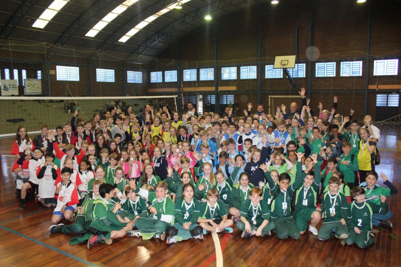 ARROIO DO MEIO – Mais de 160 alunos das redes municipal e particular de ensino participaram da etapa Mini Vôlei das Olimpíadas Estudantis, realizada na terça-feira, 21, no Ginásio do Colégio Bom Jesus, envolvendo meninos e meninas da categoria Pré Mirim. Ao final dos jogos, todos foram premiados com medalhas de participação, simbolizando o espírito esportivo e de integração da competição.