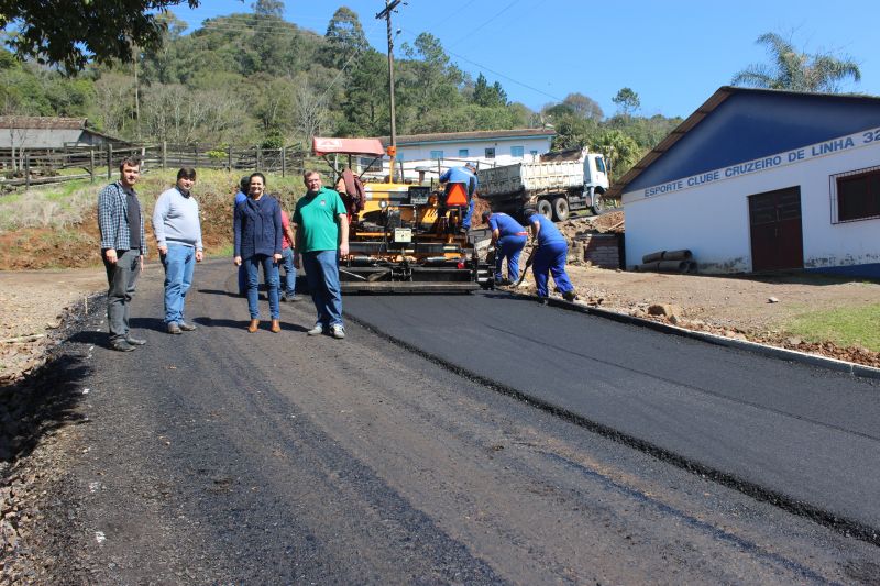 ARROIO DO MEIO – Foi concluída na última semana a pavimentação asfáltica da Estrada Geral de Linha 32, beneficiando o trecho do perímetro urbano da localidade, incluindo a Sede Esportiva, Igreja e Salão. A obra corresponde a 420 metros de extensão asfáltica, num investimento próximo a R$ 400 mil, provenientes de recursos de emenda federal somado à contrapartida do Município.