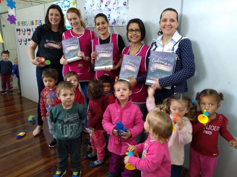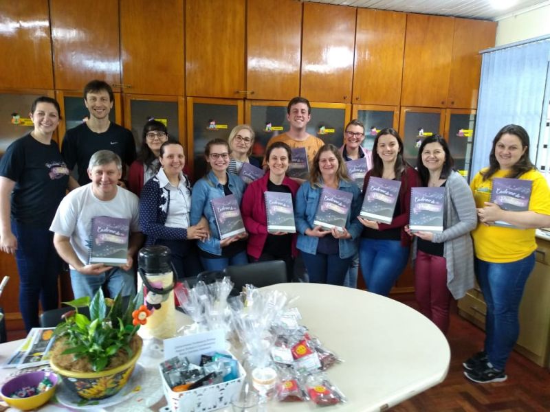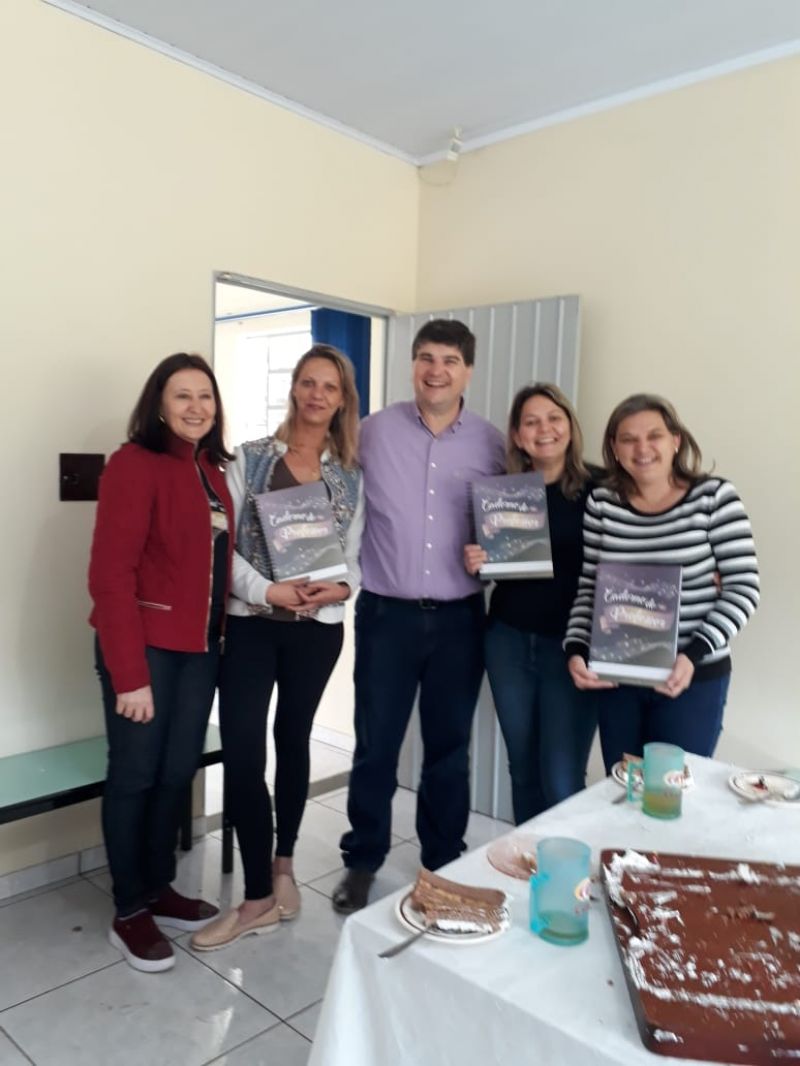 ARROIO DO MEIO – Em homenagem ao Dia do Professor, comemorado em 15 de outubro, o Prefeito Klaus Werner Schnack, vice Eluise Hammes e Secretária da Educação e Cultura, Mara Betina Forneck estiveram nas 13 Escolas Municipais de Ensino Fundamental (EMEFs) e oito Escolas Comunitárias de Educação Infantil (ECEIs) no último dia 11. Na ocasião, manifestaram o reconhecimento pelo trabalho realizado pelos profissionais que atuam no município, presenteando-os com cadernos personalizados para o próximo ano letivo.