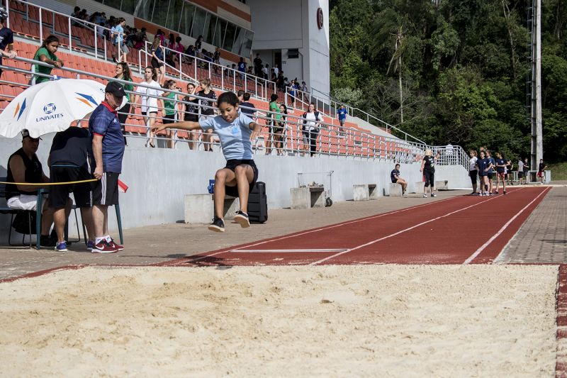ARROIO DO MEIO – Cerca de 250 alunos das redes municipal e estadual de ensino participaram da etapa Atletismo das Olimpíadas Estudantis 2018, realizada na última sexta-feira, 23, no Complexo Esportivo da Univates. Divididos nas categorias Mirim e Infantil, os alunos disputaram as modalidades Salto em Distância, Arremesso de Peso e Corrida.