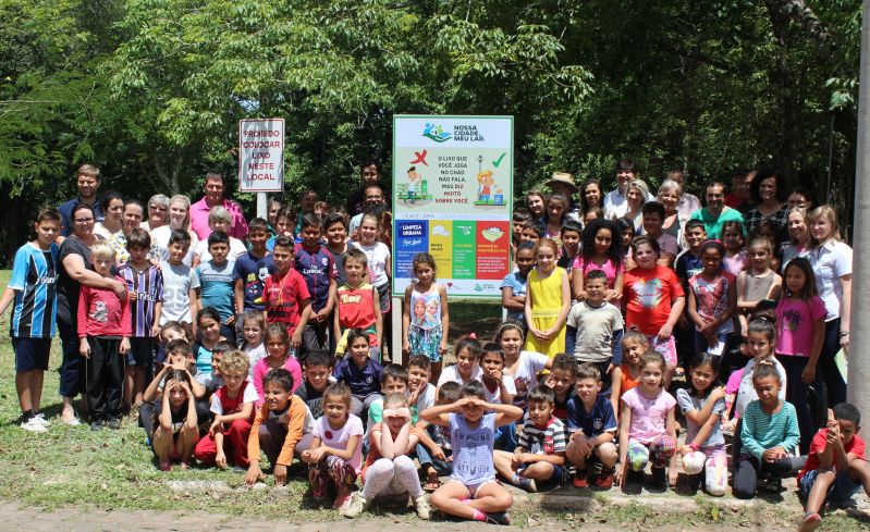 As atividades iniciaram na sexta-feira à tarde, 7, quando foi instalada uma placa de orientação sobre descarte correto de lixo, no bairro Navegantes, na área do antigo Balneário. Na ocasião, os alunos da escola municipal do bairro entoaram uma canção que alertava sobre a reciclagem do lixo e cuidados com a natureza. A vice-prefeita Eluise Hammes ressaltou que a escola é um lugar muito importante para falar sobre meio ambiente e que o assunto deve ser levado aos lares para as famílias. O Prefeito Klaus Werner Schnack lembrou a importância do balneário para a história do município. “Um lugar tão bom de estar e que devemos ajudar a cuidar”. Esclareceu sobre os dias corretos para descarte e recolhimento de galhos verdes e móveis velhos, conforme anunciado na placa instalada. “Pedimos que todos vocês nos ajudem a cuidar desse lugar que é nosso”, solicitou. O momento ainda foi abrilhantado com a leitura dos textos escritos pelos moradores dos bairros, professora Clevi Jovanella e aluno Anderson Cezar Ferreira, ambos publicados no livro “Meu lugar...minhas memórias...”