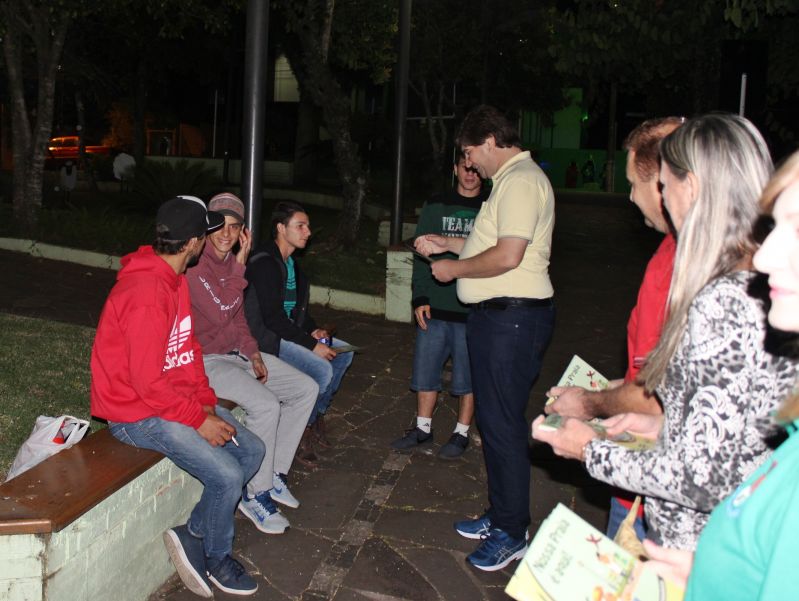Na sexta-feira e sábado à noite, uma equipe coordenada pelo Departamento do Meio Ambiente realizou roteiro por lugares conhecidos da cidade, frequentados aos finais de semana por jovens para encontros de lazer e integração, incluindo o trevo, a Praça Flores da Cunha, Rua de Eventos e entorno da Prefeitura Municipal e Casa do Museu. Na ocasião foram entregues folders do Nossa Praia é Aqui, reforçando a importância da colaboração dos frequentadores dos espaços públicos no recolhimento dos vasilhames, garrafas e alimentos utilizados pelos mesmos nos momentos de lazer.