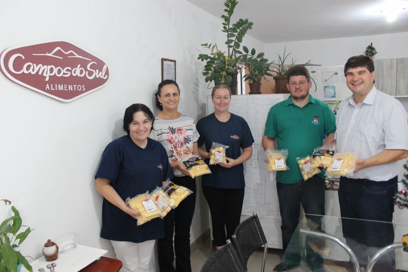 Na última semana o Prefeito Klaus Werner Schnack, vice Eluise Hammes e Coordenador da Secretaria de Indústria, Comércio e Turismo, Carlos Henrique Meneghini, visitaram a Campos do Sul, empresa que iniciou no ramo alimentício há 20 anos, tendo como carro chefe o aipim. Instalada em Arroio do Meio – entre a ERS 130 e CTG Querência - desde junho de 2018, a unidade local produz de forma artesanal polenta pré-frita em palito e pão de queijo pré-cozido. Os produtos são produzidos em diferentes formatos e tamanhos, com opções sem glúten e personalizados a pedido do cliente. Com 17 funcionários em atividade, a empresa familiar atende diversas cidades do Rio Grande do Sul, projeta duplicar a atual produção e romper barreiras do Estado. A Administração Municipal auxiliou a empresa na busca por um pavilhão adequado e na execução de serviços de máquinas para drenagem, nivelamento do pátio com colocação de material e acesso. “Temos a responsabilidade de possibilitar oportunidades de emprego e renda à nossa comunidade ”, pontuou Schnack na ocasião.