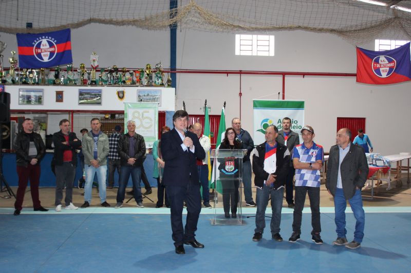 O evento seguiu com o pronunciamento do Presidente do Clube, Valmor Mörs, que agradeceu a todos que se envolveram para a concretização da obra e a todas comunidades presentes na ocasião. A Presidente da Câmara de Vereadores, Adiles Meyer, ressaltou o sentimento patriótico e o aniversário do Clube. “Parabéns pela força e perseverança dessa comunidade que valoriza e preserva sua história”, elogiou. Representando o Deputado Federal Alceu Moreira, que destinou a emenda de R$ 250 mil para a obra, o vereador Marcelo Schneider lembrou de outros recursos do parlamentar que viabilizaram obras de saúde e educação para o Município. “Este é um ginásio que várias gerações vão aproveitar, com a prática de esportes e demais atividades saudáveis de integração e lazer”, destacou.