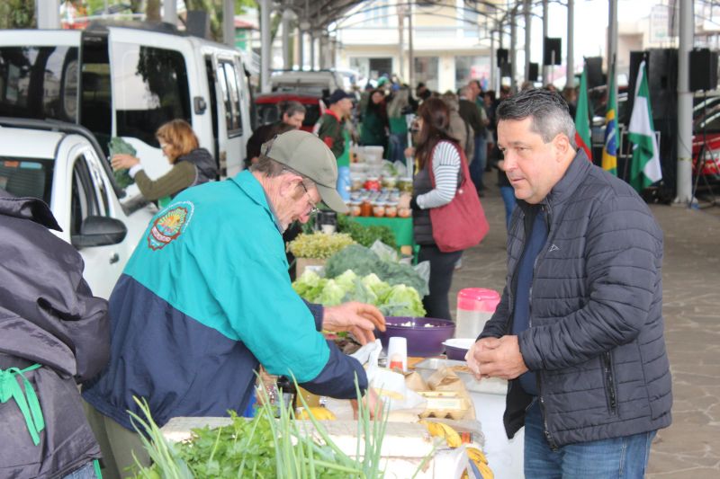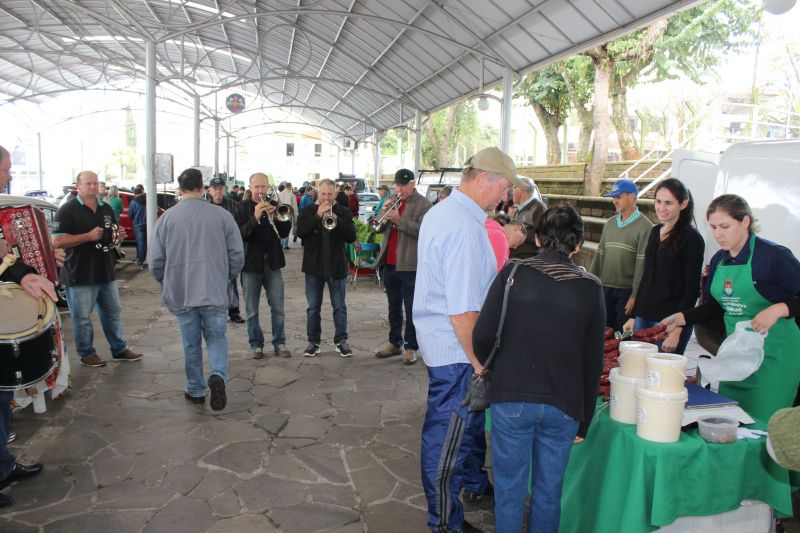 Prefeito Klaus Werner Schnack saudou os feirantes pelos nove anos de dedicação e carinho com a comunidade. “É uma oportunidade de renda para nossos produtores e de alimentação saudável para nossas famílias”, ressaltou. “Esse espírito de alimento saudável, ambiente organizado e assim, juntos, teremos sempre um dia a dia melhor”, finalizou Schnack, convidando todos para a 3ª Feira Agrícola, a realizar-se dias 25 e 26 de outubro, no Distrito de Forqueta. O evento seguiu com homenagem aos feirantes e entrega simbólica de uma cesta do PAA para a AMAM. A entrega oficial inicia em outubro, com repasse de R$ 85 mil para aquisição de alimentos para as duas entidades mais 100 famílias cadastradas junto ao CRAS, envolvendo 19 produtores rurais do Município no fornecimento dos alimentos. Os músicos da banda Sem Compromisso, de Forqueta, garantiram a manhã de integração.
