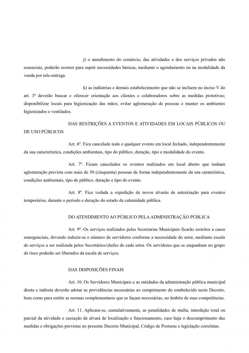 SERVIÇOS PÚBLICOS: Em relação ao atendimento público, os serviços realizados pelas Secretarias Municipais ficam restritos a casos emergenciais, com redução do número de servidores, mediante sistema de escala e plantão.