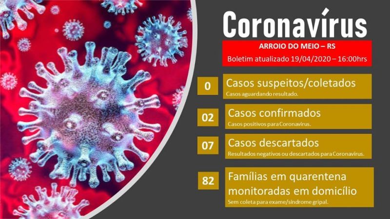 Além dela, Arroio do Meio confirmou positivo para coronavírus no início da semana, a paciente de 44 anos, que encontra-se recuperada em isolamento domiciliar.