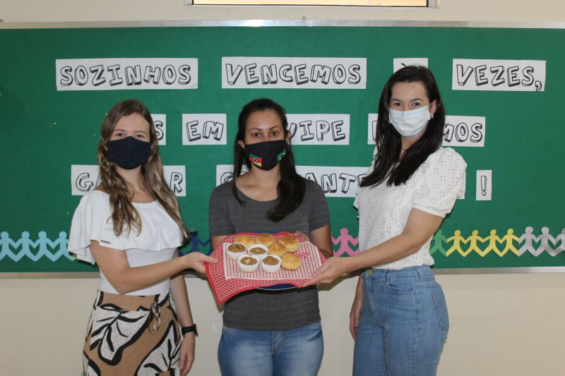 Pãozinho de Batata Doce e Bolo de Maçã sem Açúcar foram as receitas indicadas pela Extensionista Rural Social da Emater local, Márcia Fonseca e inscritas pela nutricionista Joice Johann Bordignon, Responsável Técnica do Programa Nacional de Alimentação Escolar de Arroio do Meio, acompanhada de Carolina Kraemer, Nutricionista Responsável Técnica das Escolas de Educação Infantil do Município. De acordo com Márcia, as receitas foram desenvolvidas na Cozinha Didática da Expoagro Afubra e já estão sendo testadas com as merendeiras das escolas para o ano letivo de 2021.