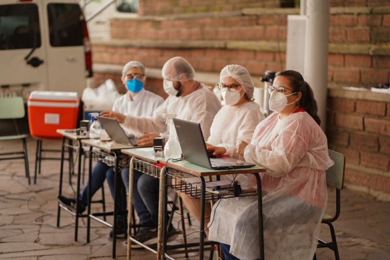 No sábado (13), foram vacinados profissionais da saúde também com agendamento prévio.