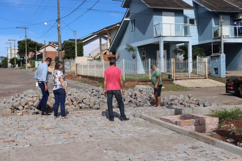 Na Olavo Bertholdo Trasel a colocação das pedras de basalto iniciou nesta semana. Serão 102 metros de extensão pavimentados, beneficiando seis lotes e uma área verde, sendo que a parte que corresponde à área verde é de responsabilidade do município.
