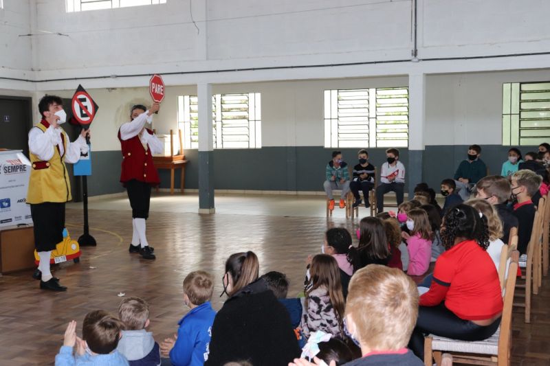 Ao longo da semana, alunos do 1º ao 5º ano das escolas Professor Arlindo Back, Duque de Caxias, Tancredo Neves, Dona Rita, Princesa Isabel, João Beda Körbes e São Caetano assistiram ao teatro “Vida sempre”, do Instituto Elisabetha Randon. A apresentação teve como objetivo educar pedestres e motoristas para um comportamento mais adequado e seguro no trânsito.