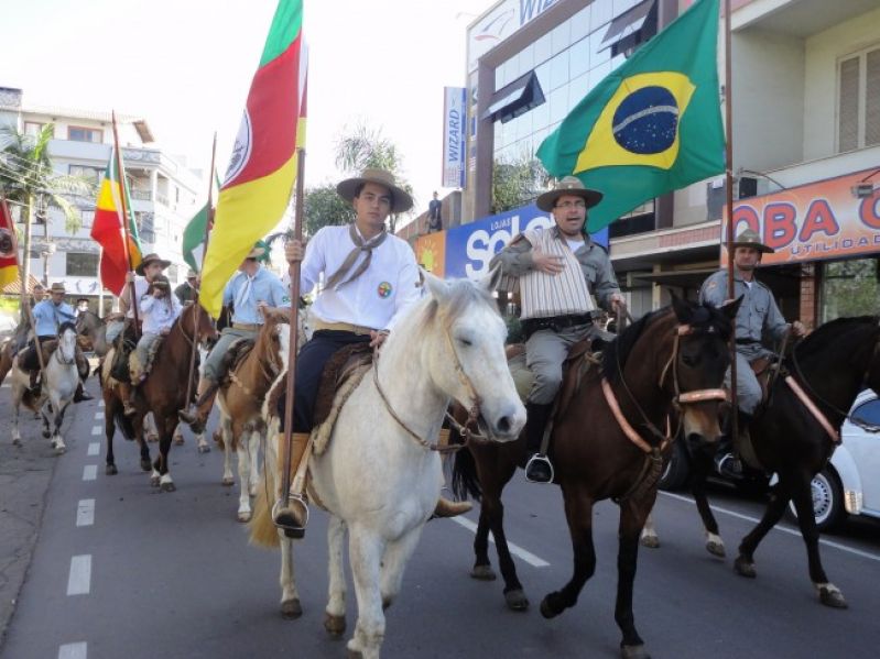 Cantos, comida típica, vestimentas, declamações, chimarrão e cavalarianos marcaram o lançamento da 10ª CulturArte, este ano intitulada de CulturArtchê. Em sua edição comemorativa, o maior evento de cultura e educação do município homenageia a cultura gaúcha e o tradicionalismo, promovendo diversas atrações que seguem a partir dessa semana até o dia 6 de setembro. O evento que marcou o início das atividades foi realizado em frente à Secretaria de Educação e Cultura (SEC) e contou com a presença de autoridades, equipe da SEC, diretores de escolas, Núcleo Municipal de Cultura, representantes dos Centros de Tradições Gaúchas (CTGs) Querência de Arroio do Meio e Herança Nativa, piquete Recanto do Gaúcho e demais simpatizantes do tradicionalismo. A Secretária de Educação e Cultura, Eluise Hammes, iniciou a cerimônia ressaltando a importância das diferentes manifestações culturais para o avanço de uma sociedade. –A CulturArtchê retrata, reforça e perpetua o orgulho de sermos gaúchos–, decretando em seguida a abertura oficial do evento. Em seguida, o Coral Canção e Vida, composto por alunos da Escola Municipal de Ensino Fundamental (EMEF) Tancredo Neves e Associação dos Menores de Arroio do Meio (AMAM II), interpretou canções que representam parte da história da cultura gaúcha. Após a explanação de toda a programação da CulturArtchê, o Prefeito Sidnei Eckert pronunciou-se parabenizando todos os envolvidos na organização do evento e destacando a riqueza que a diversidade de culturas representa para o município. Na seqüência, o tradicionalista André Ziem declamou a poesia –Ave Maria do Peão–. Para encerrar o evento que marcou o início das atividades que seguem até o mês de setembro, a professora e tradicionalista Regina Rodrigues apresentou o projeto da Biblioteca Itinerante Mala de Garupa, entregando os acessórios carregados de livros da literatura e história gaúcha para os cavalarianos, que seguiram pela rua Dr. João Carlos Machado até a Escola Guararapes e Colégio Bom Jesus, onde fizeram a entrega das malas com os livros. O projeto da Biblioteca Itinerante segue até o dia 20 de setembro, e conta com o apoio dos cavalarianos dos CTGs e piquete e da cavalaria da Brigada MIlitar, que percorrerão escolas do município, levando um pouco da história do Sul aos alunos. Legenda: Cavalarianos seguiram até escolas do Centro levando a Biblioteca Itinerante Mala de Garupa. Fotos: Maica Viviane Gebing Texto: Assessoria de Imprensa