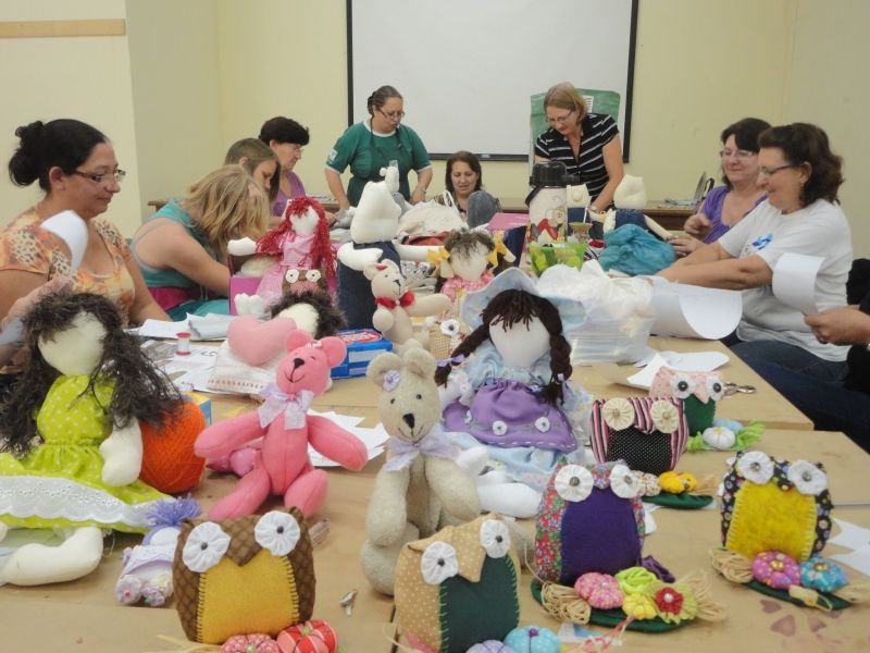 Bonecas, corujas, ursos e outros personagens ganharam vida a partir do reaproveitamento de pedaços de pano, uso de técnicas e da criatividade, durante o Curso de Bonecos de Pano realizado na última semana no município. Numa parceria entre administração municipal, Sindicato dos Trabalhadores Rurais de Lajeado e Serviço Nacional de Aprendizagem Rural (SENAR), as 15 alunas participantes aprenderam técnicas de costura, montagem, comercialização e aproveitamento de material, repassadas pela instrutora do Senar, Zélia Kaufmann, em 32 horas de aula. –Nosso principal objetivo é qualificar o artesão local–, explica Zélia. Costureira há mais de 20 anos e artesã, Dolores Klaus se inscreveu no curso visando aprender novas técnicas para aplicar no seu dia-a-dia. –É muito interessante o curso, aprendi várias coisas que eu não sabia e que eu posso usar no meu trabalho–, afirma a artesã. Desde 2010 o município já disponibilizou mais de 20 cursos gratuitos de qualificação em parceria com o Senar. Em 2012 foram cinco cursos voltados ao artesanato – palha de milho e trigo, pintura e tingimento em tecido e bonecos de pano. Os demais cursos beneficiaram os produtores rurais e agroindústrias. –Reativamos a Feira do Produtor e Artesanato, que hoje é uma realidade no município. Junto a esta conquista para agricultores, artesãos e comunidade em geral, buscamos a parceria com o Senar e passamos a ofertar cursos gratuitos de qualificação. Todos ganham com a qualidade do produto–, destaca o Prefeito Sidnei Eckert. Legenda: Bonecas, corujas, ursos e outros personagens foram produzidos pelas alunas. Fotos: Maica Viviane Gebing Texto: Assessoria de Imprensa